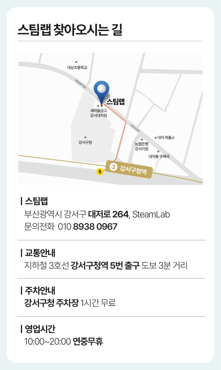 - [46702] 부산광역시 강서구 대저로 264, 1층 Steamlab